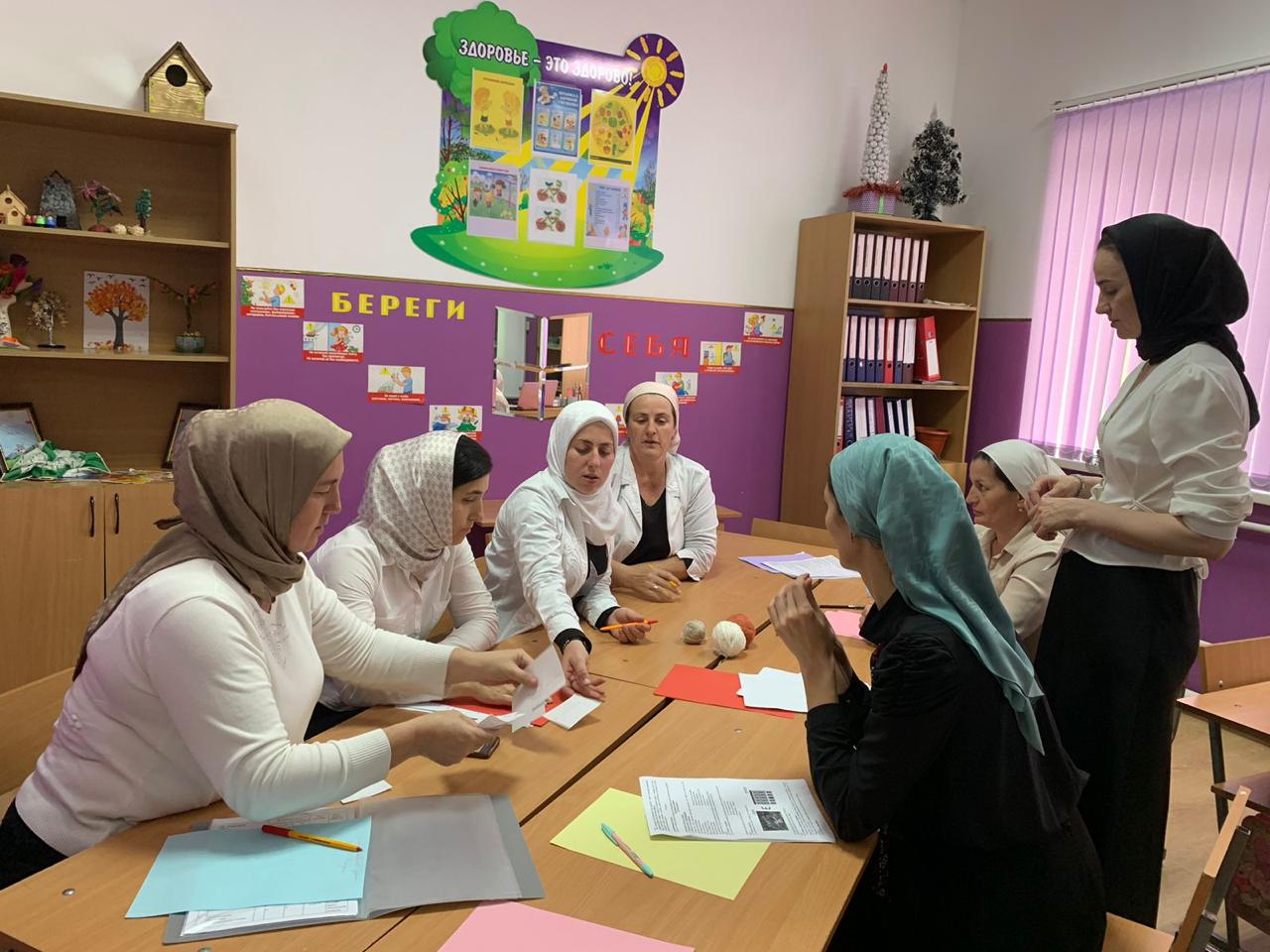 В МБОУ "СОШ с.Тазбичи имени Г.Х.Юсупова" 6 октября 2022 года, в целях создания условий для коллективного поиска эффективных путей реализации воспитательного потенциала профориентационной работы школы, а также приобретения опыта разработки моделей, выбора средств реализации воспитательного потенциала профориентационной работы школы заместитель директора по ВР Воваригова Л.Ю.провела семинар-практикум в форме деловой игры на тему: "Рабочая программа воспитания.Реализация воспитательного потенциала профориентационной работы школы" с педагогами школы.