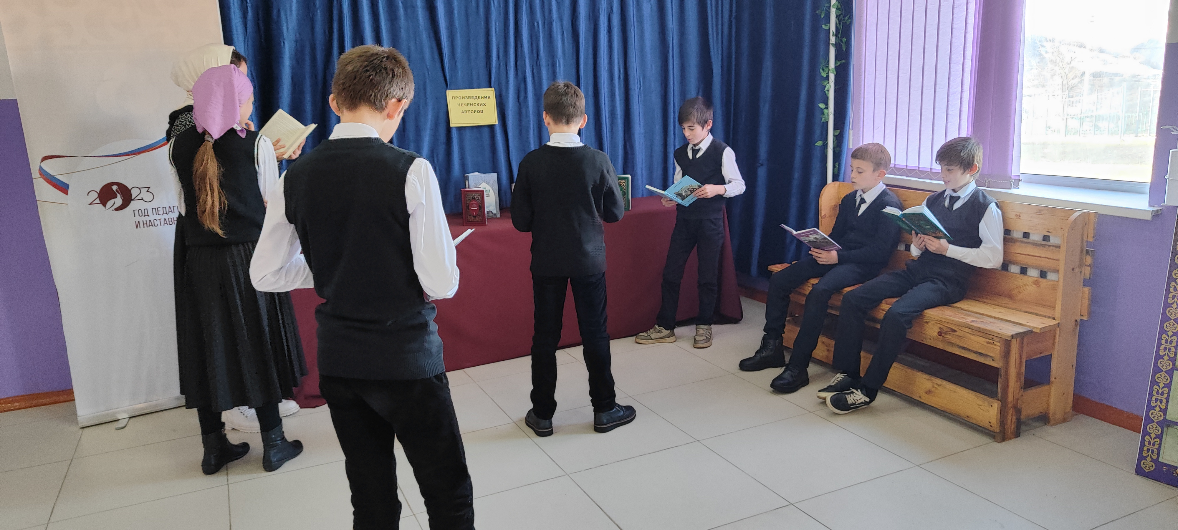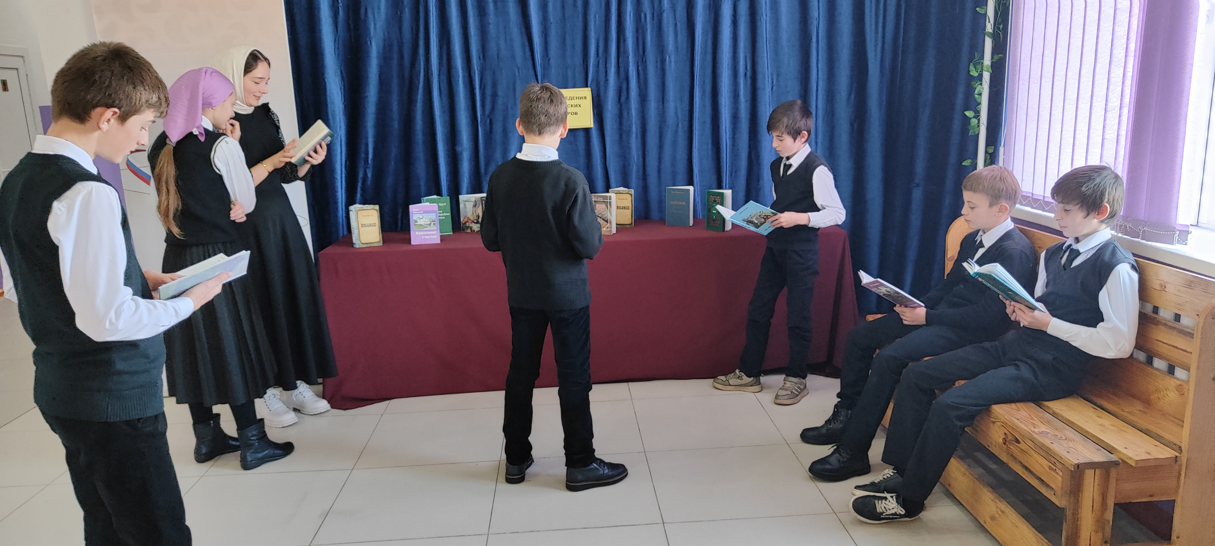 Здесь, также, были представлены произведения Сулаева, Айдамирова и Бадуева. Школьники, в свою очередь, рассказали об интересных на их взгляд трудах авторов, с которыми они знакомы, прочитали также стихотворения героев выставки.