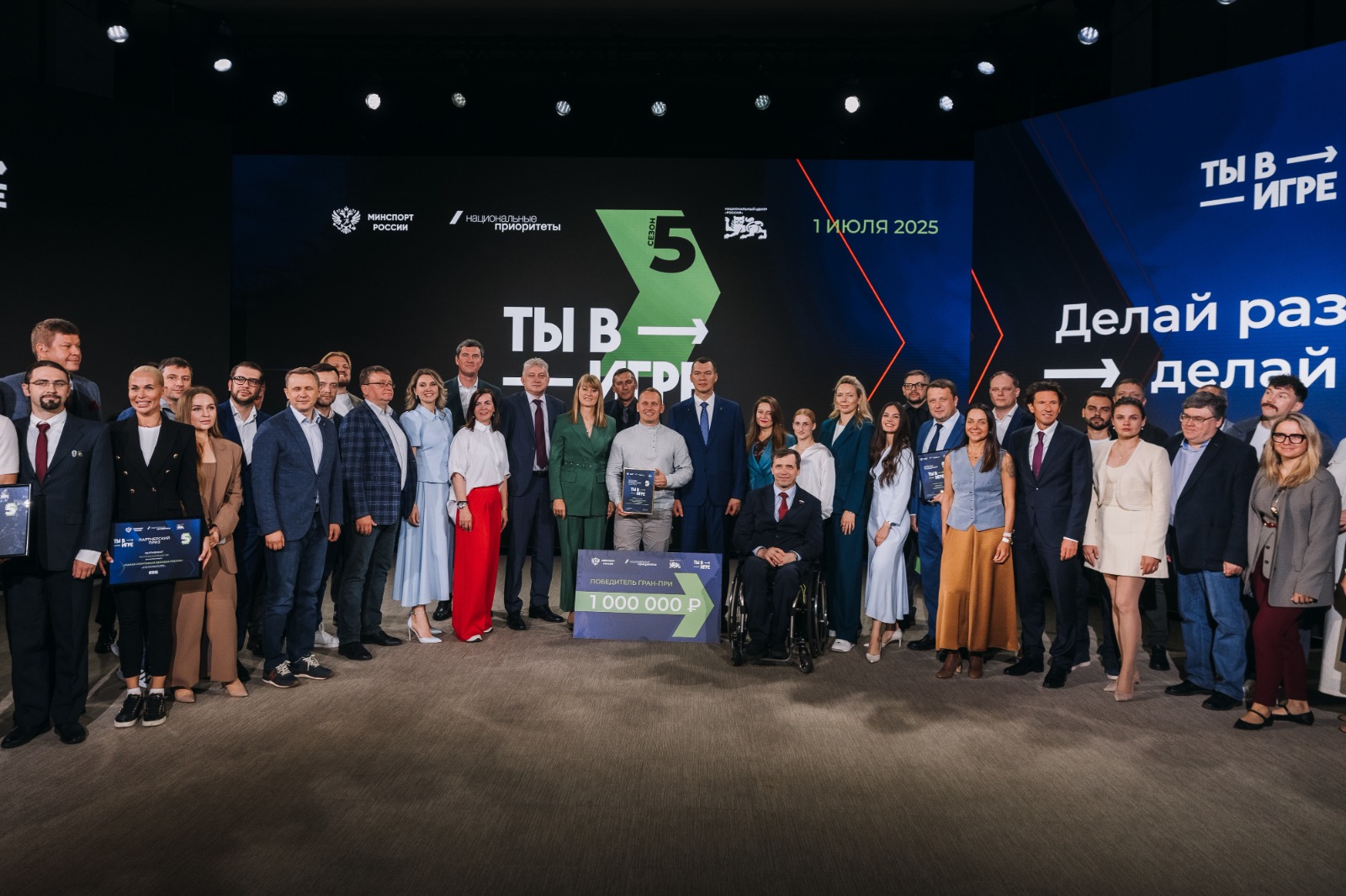 В финал пятого сезона Всероссийского конкурса спортивных проектов «Ты в игре» вышло 34 проекта. Победители в каждой из пяти основных номинаций получили по 300 тысяч рублей, а Гран-при составил 1 миллион рублей.