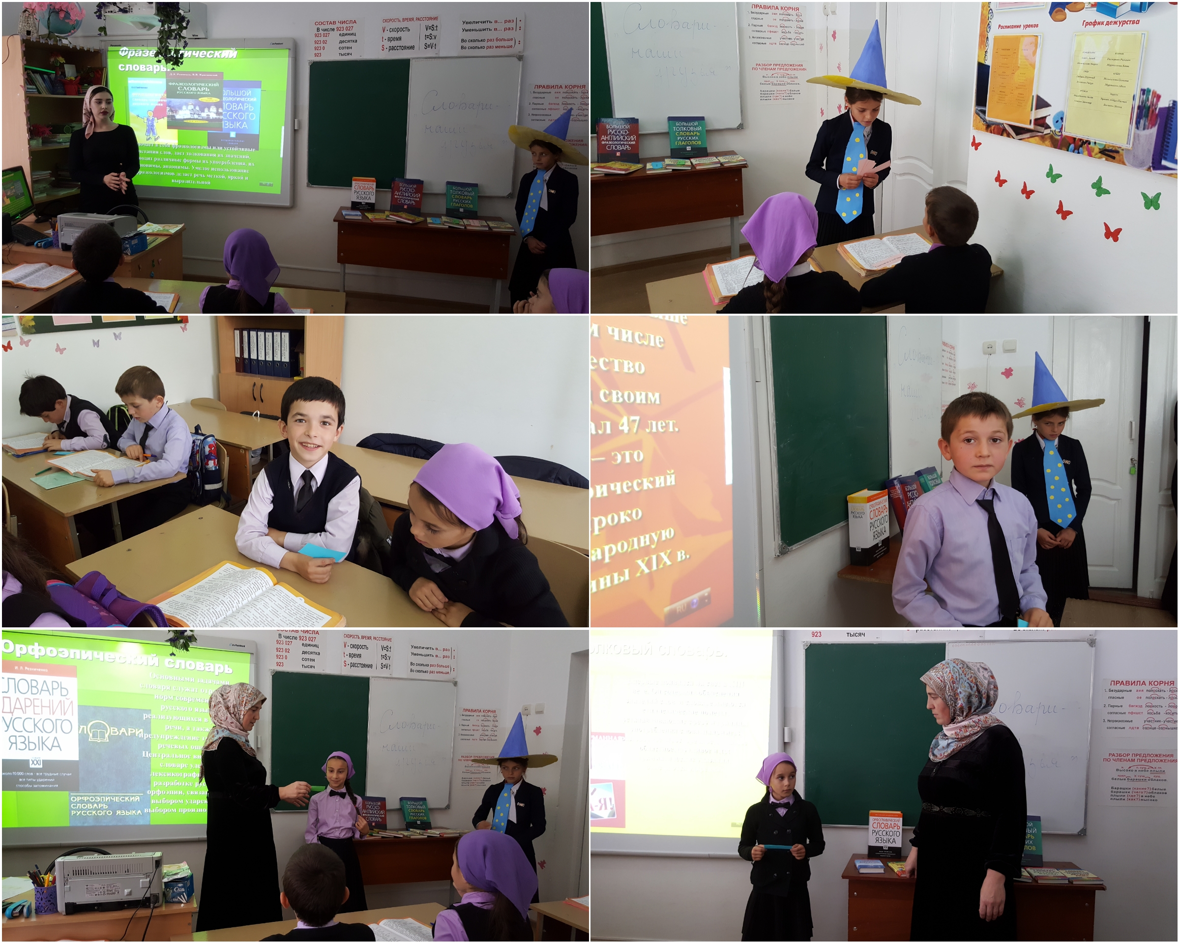 Интерактивное представление провели библиотекарь школы Агаева П. М. и учитель русского языка и литературы Батукаева Х. Х., которые рассказали ребятам о Толковом словаре живого великорусского языка В. И. Даля, в котором содержится около 200000 слов и 30000 пословиц, поговорок, загадок и присловий, служащих для пояснения смысла приводимых слов, также ребятам рассказали о том, что в основе словаря лежит живой народный язык с его областными видоизменениями и включает лексику письменной и устной речи XIX века, терминологию и фразеологию различных профессий и ремёсел. Помимо этого, ребята получили возможность сыграть в лингвистические игры вместе с Незнайкой: «Расскажи без слов», «Объясни значение фразеологизма», «Сколько значений у слова?».